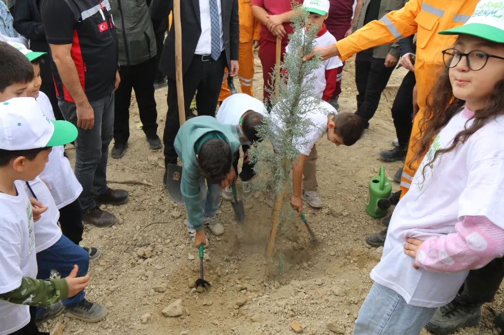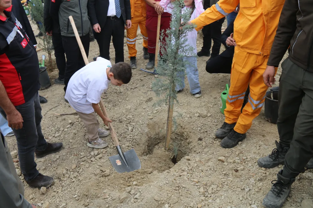 Düzenlenen etkinlikte öğrenciler ve programa katılanlar fidanları toprakla buluşturarak ilk can sularını verdiler.