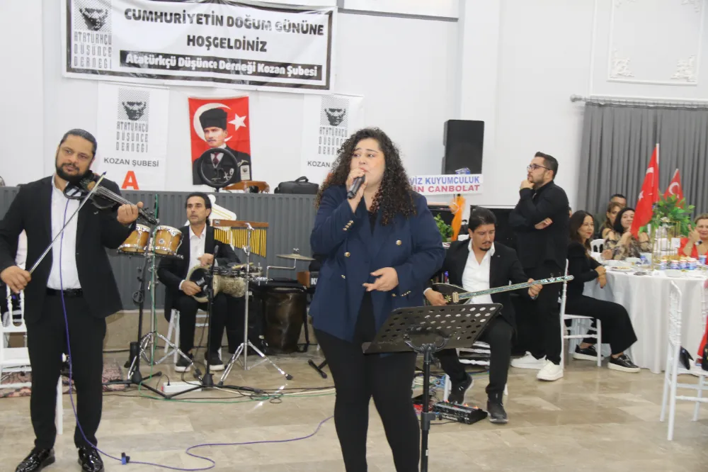 Atatürkçü Düşünce Derneği (ADD) Kozan Şubesi tarafından Cumhuriyet'in kuruluşunun 102. yıl dönümü onuruna Cumhuriyet Balosu düzenlendi. Çok sayıda davetlinin katıldığı programda, Cumhuriyet sevdalıları tek yürek oldu. Program, saygı duruşu ve İstiklal Marşı'nın ardından yapılan konuşmalarla devam etti.
