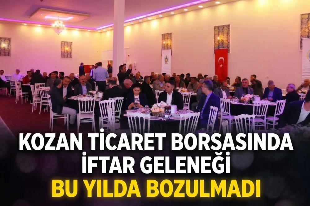 Kozan Ticaret Borsası geleneksel iftar yemeğinde borsa üyelerini ve ilçe protokolünü bir araya getirdi. Kur'an tilavetiyle başlayan programda dualar edildi, oruçlar hep birlikte açıldı.