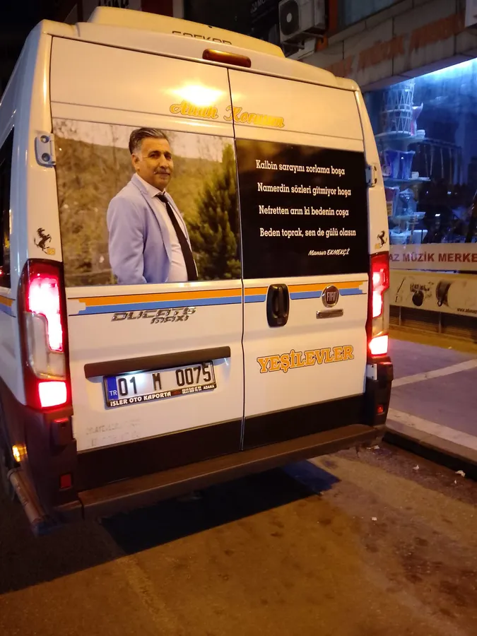 S.S. Yeşilevler Gürselpaşa Dolmuşları 25 Nolu Motorlu Taşıyıcılar Kooperatifi’nin başkanı Çetin Lala ve yönetim kurulunun aldığı kararla, şairin çeşitli dizeleri fotoğrafıyla birlikte 15 dolmuşun arkasına yerleştirildi. Bu uygulama sayesinde Adanalılar, günlük yolculuklarında Kozanlı şairin kaleminden çıkan mısralarla buluşma imkanı elde etti.
