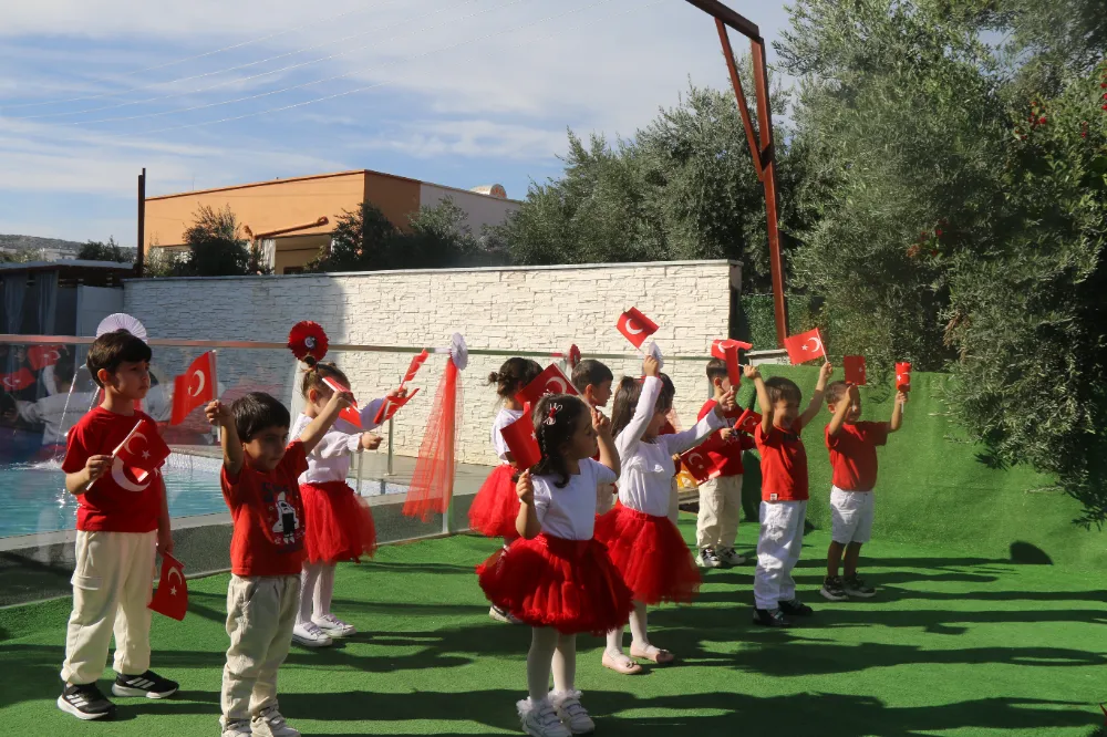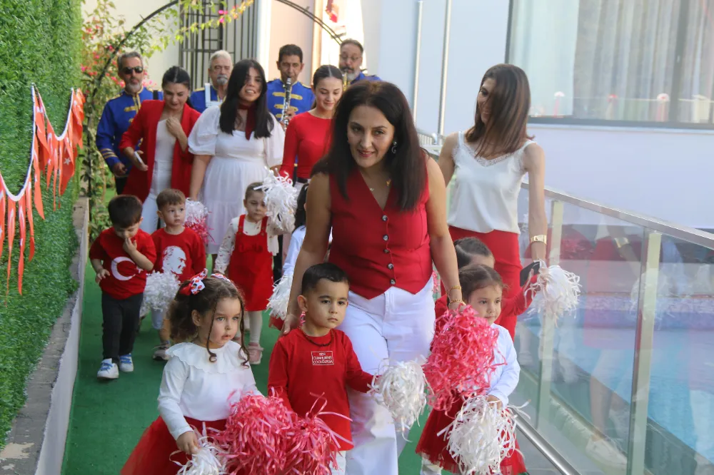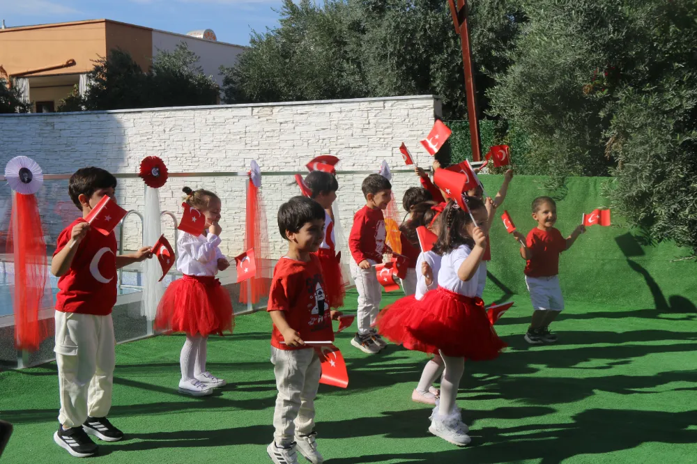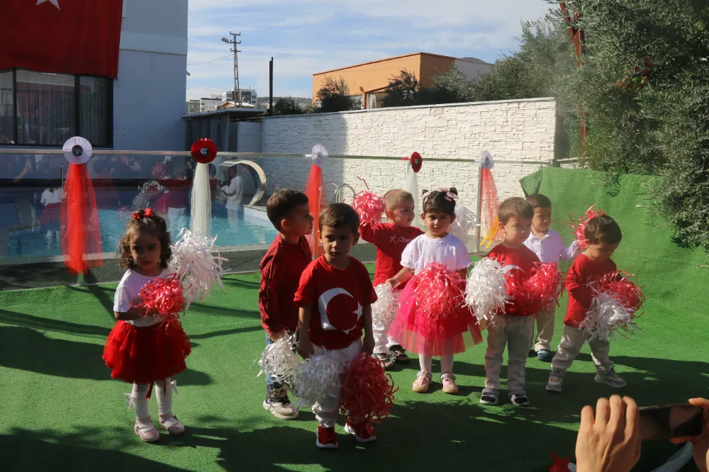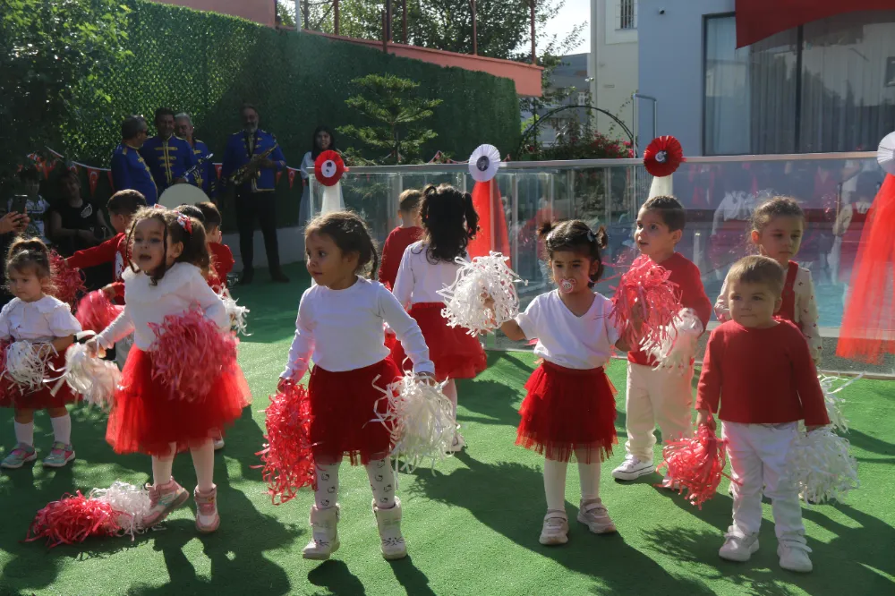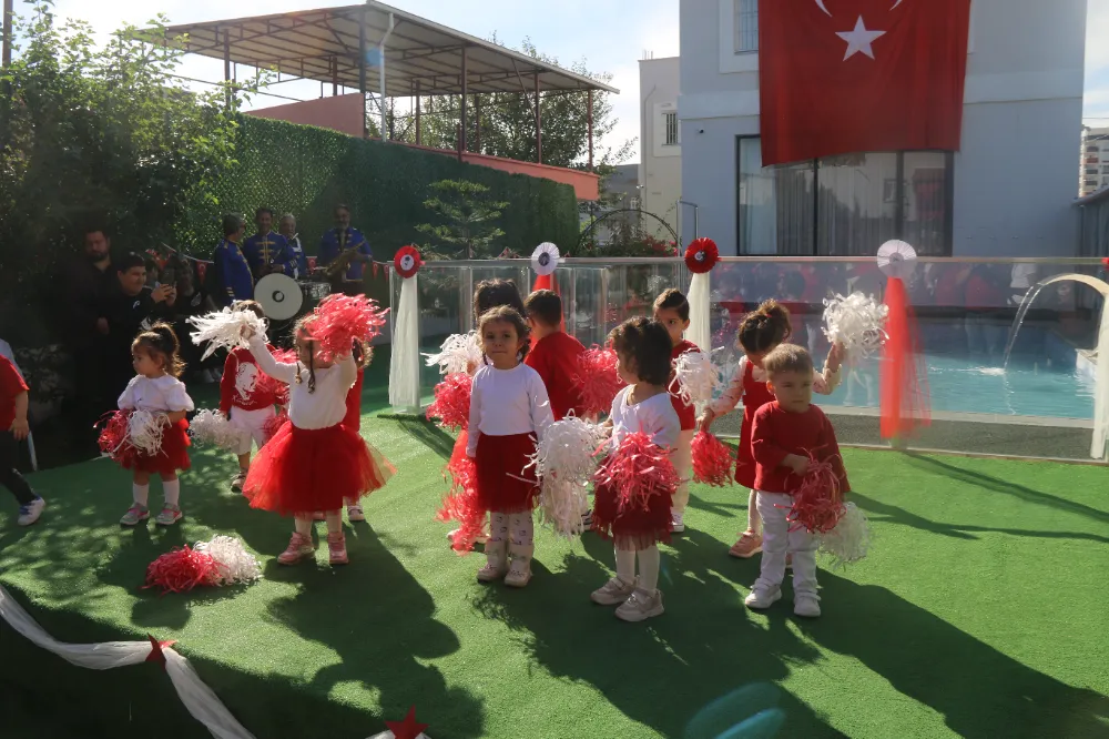 Kozan Arı Maya Kreş ve Gündüz Bakımevi’nde Cumhuriyet coşkusu! Minik öğrenciler, ellerinde bayraklarla ve pomponlarla 29 Ekim için muhteşem bir gösteri sundu. Veliler çocuklarına eşlik etti.