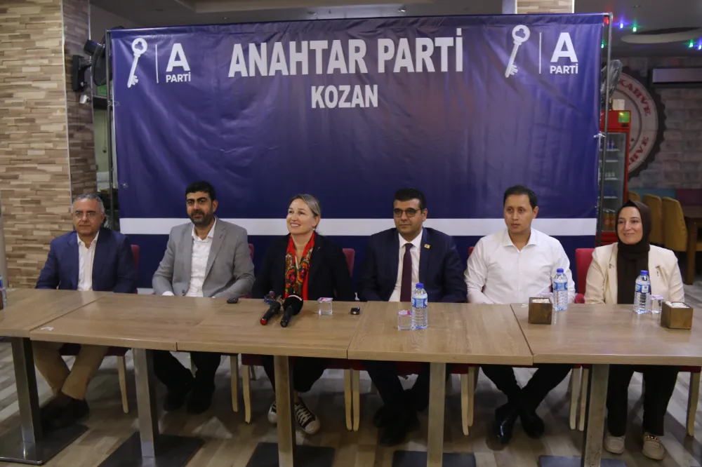 Açılış konuşmasını yapan Anahtar Parti Kozan İlçe Başkanı Gürdal Topal, Genel Sekreter Nihal Ağca, Adana İl Başkanı Atilla Karataş ve MYK Üyesi Ertuğrul Ülker’i basına takdim etti.