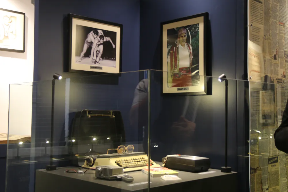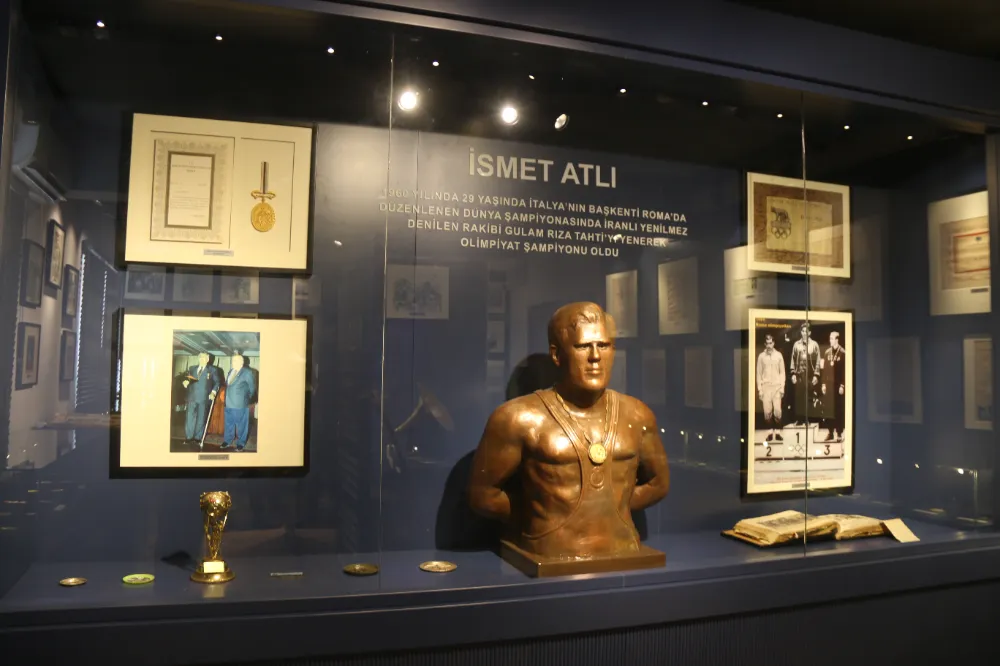 Müzenin içinde ziyaretçileri adeta bir zaman tüneli karşılıyor. İsmet Atlı'nın dostlarıyla oynadığı tavlası, oturduğu koltuk, antrenman eşofmanı, babası Pehlivan Ali'nin av tüfeği, yazdığı makaleler, daktilosu, kamerası ve ozanlığını simgeleyen bağlaması sergileniyor. Müzenin can alıcı noktası ise, 1960 Roma Olimpiyatları'nda "yenilmez" denilen İranlı Tahti'yi yenerek kazandığı ve Türkiye'yi sevince boğan altın madalya ile o madalyanın orijinal sertifikası. Ayrıca Cumhurbaşkanlığı tarafından verilen Devlet Üstün Hizmet Madalyası ve Şeref Belgesi de müzenin en değerli parçaları arasında yer alıyor.