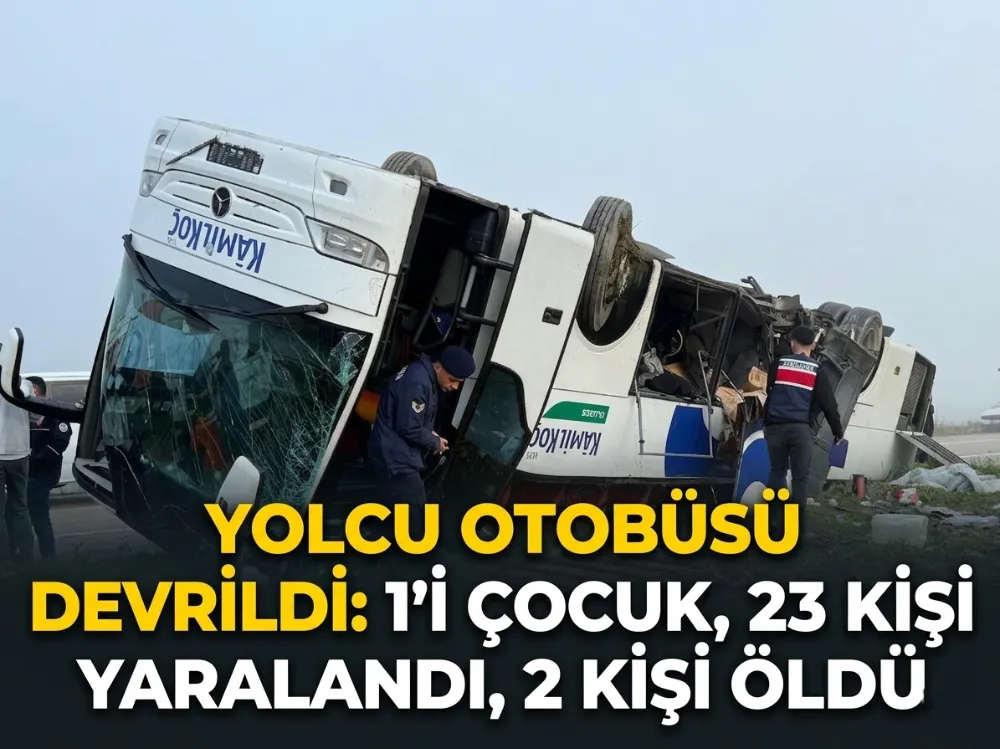YOLCU OTOBÜSÜ DEVRİLDİ: 1'İ ÇOCUK, 23 KİŞİ YARALANDI, 2 KİŞİ ÖLDÜ